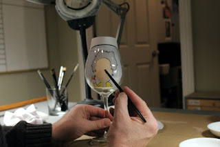 After I am happy with the design and/or the client has approved, I then start the process of cleaning the wine glass off with soap and water, then dry it and clean it again with rubbing alcohol.